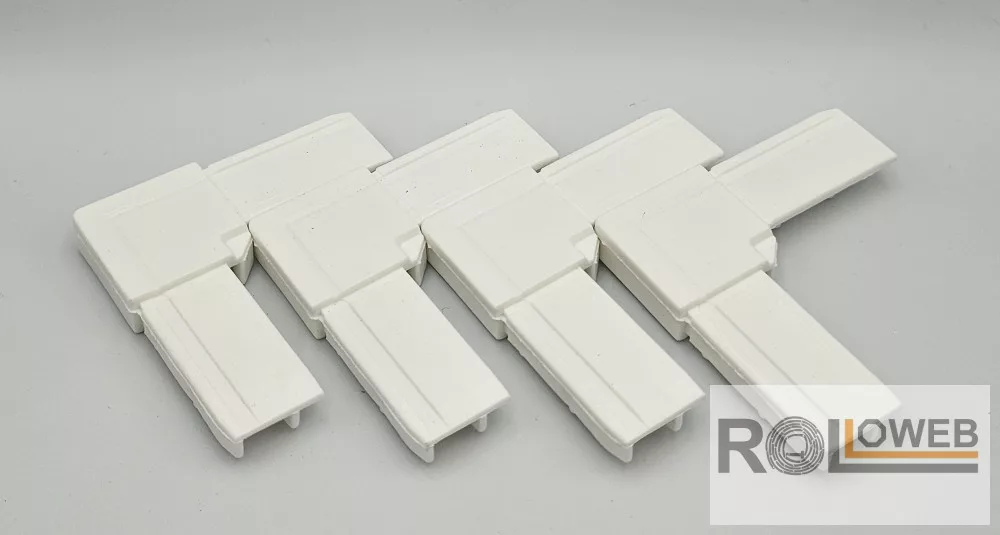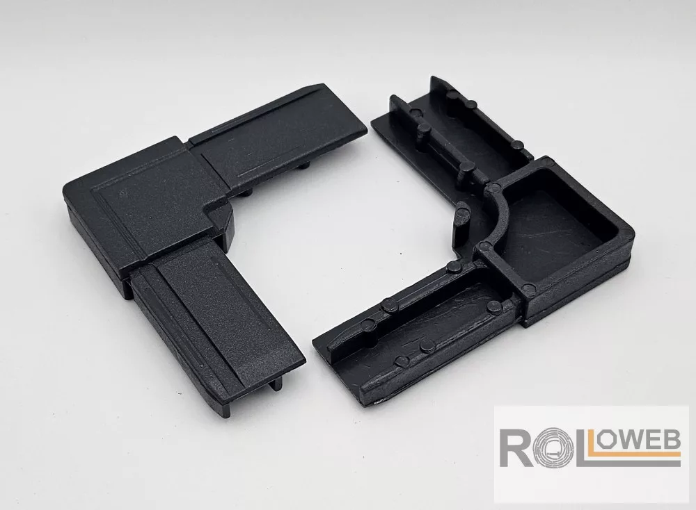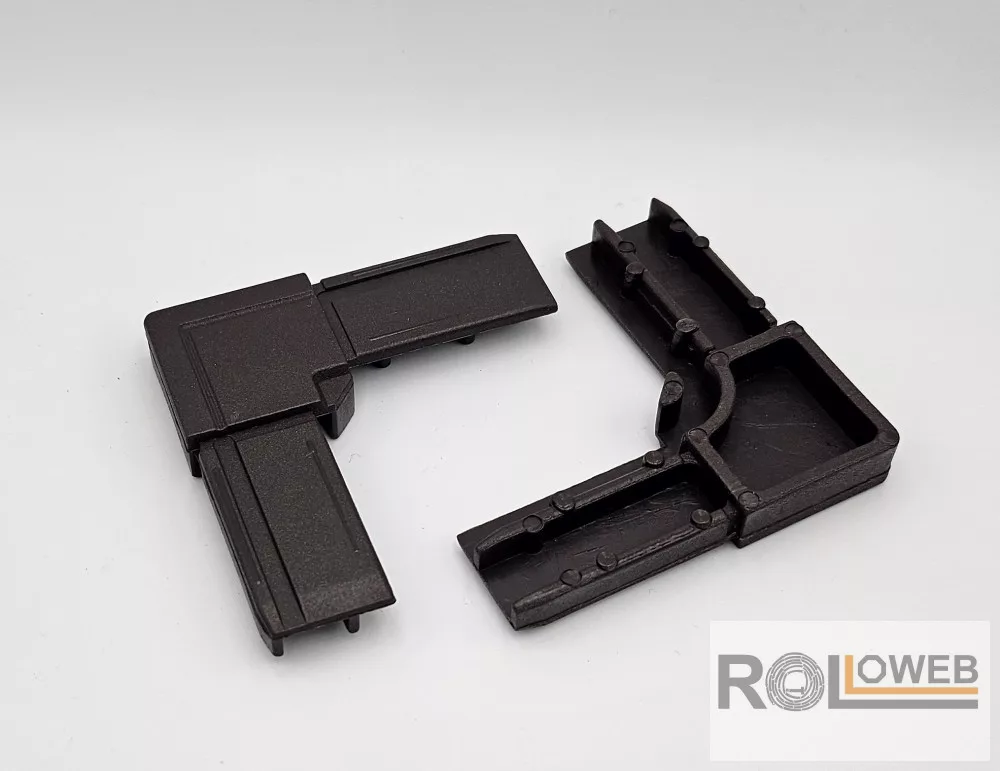 A 26x11 mm-es, keretes rovarhálóháló külső sarokeleme. A sarokelem segítségével lehetséges a profilok összekapcsolása.